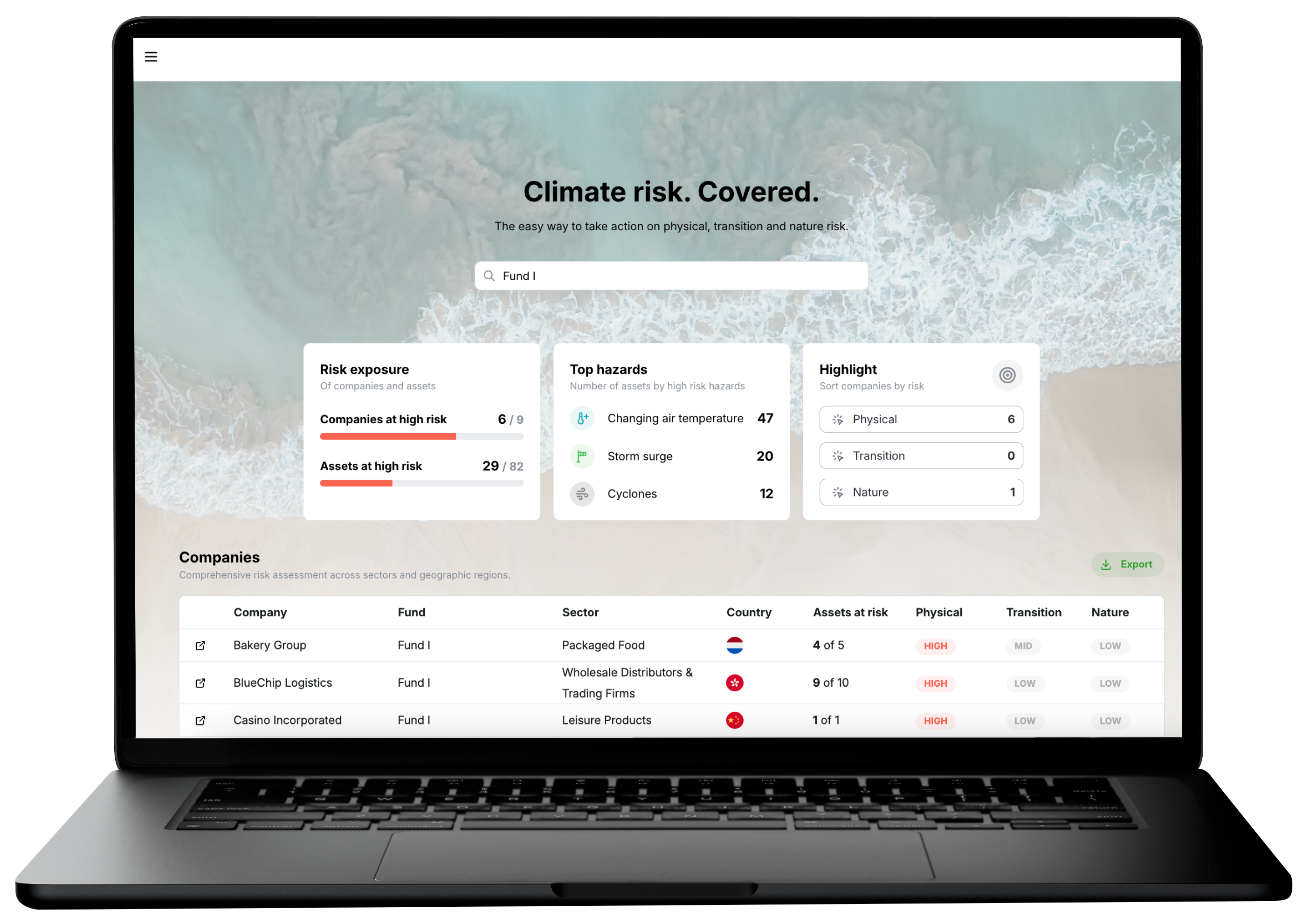 We built the best tool on the market, combining quantitative and qualitative insight across transition, physical, and nature risk—a unified view you won't find anywhere else.